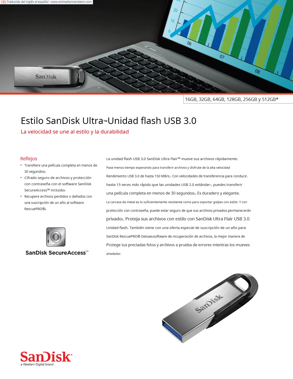 Memoria SANDISK ULTRA FLAIR / 32gb / USB 3.0 / Metálico