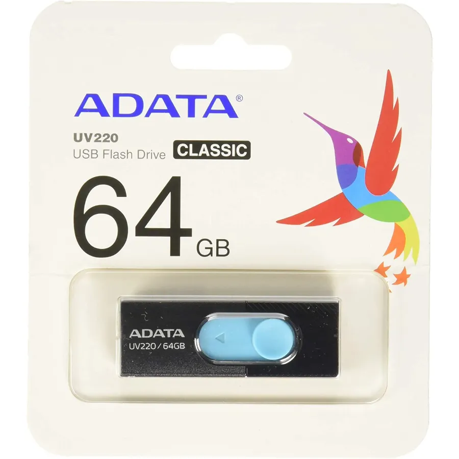 Memoria Usb Adata 64gb / Usb 2.0 / Uv220 Retractil / Negro Con Azul