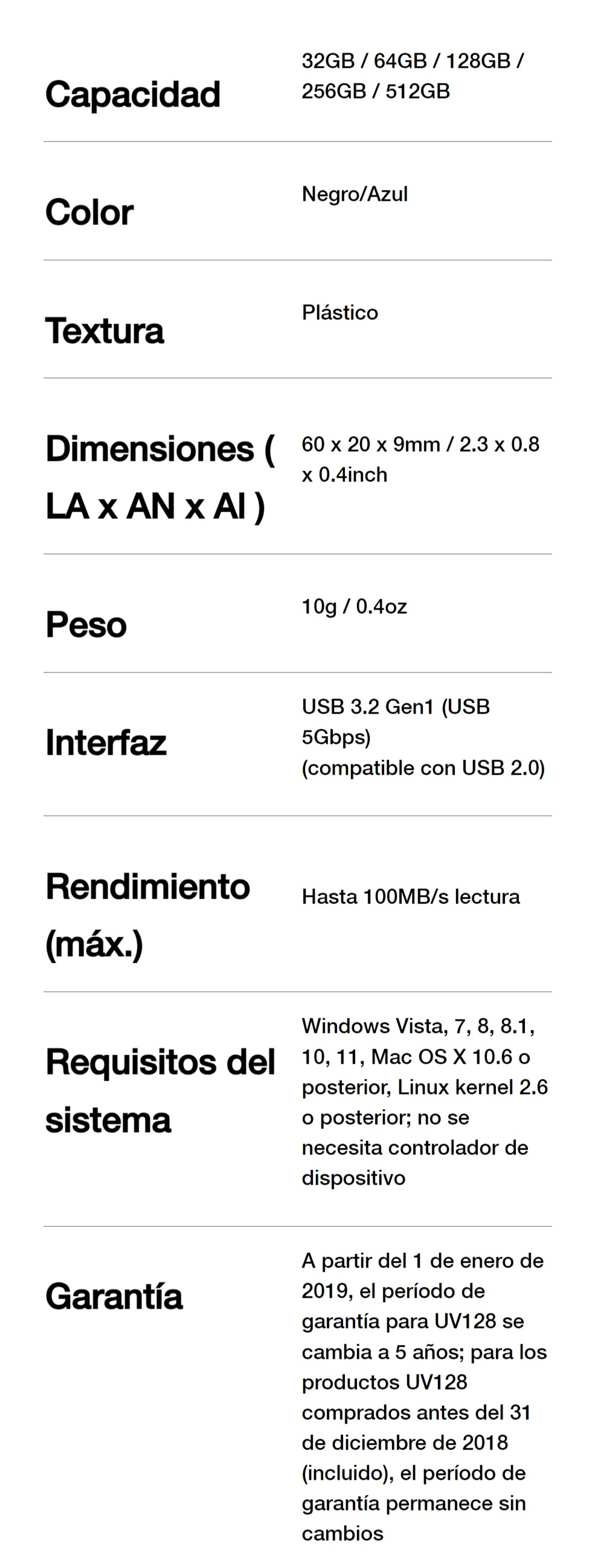 Memoria USB ADATA UV128 / 256GB / USB 3.2 Gen 1 / Deslizante / Negro Con Azul