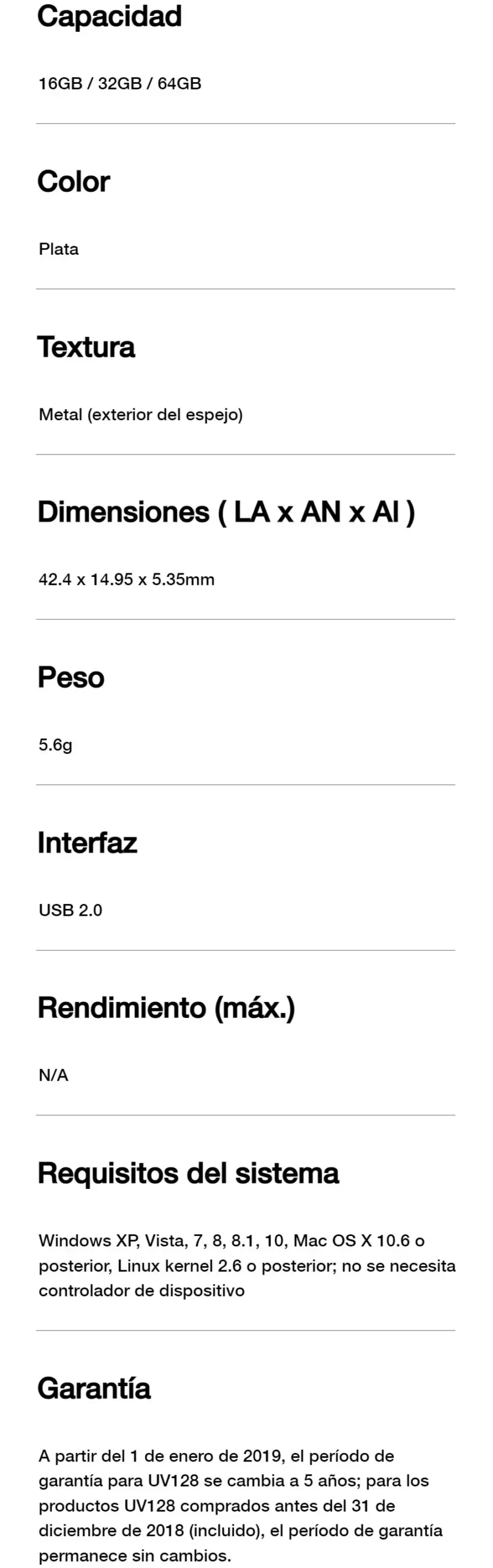 Con un diseño elegante, limpio, sin tapa y con una capacidad de hasta 64 GB, su UV250 transporta sus datos con estilo.