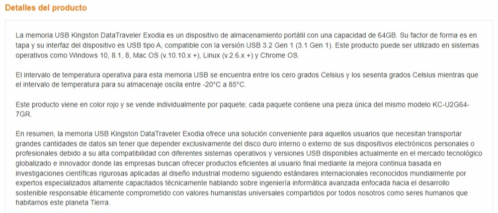 • La memoria USB Kingston DataTraveler Exodia es un dispositivo de almacenamiento portátil con una capacidad de 64GB.