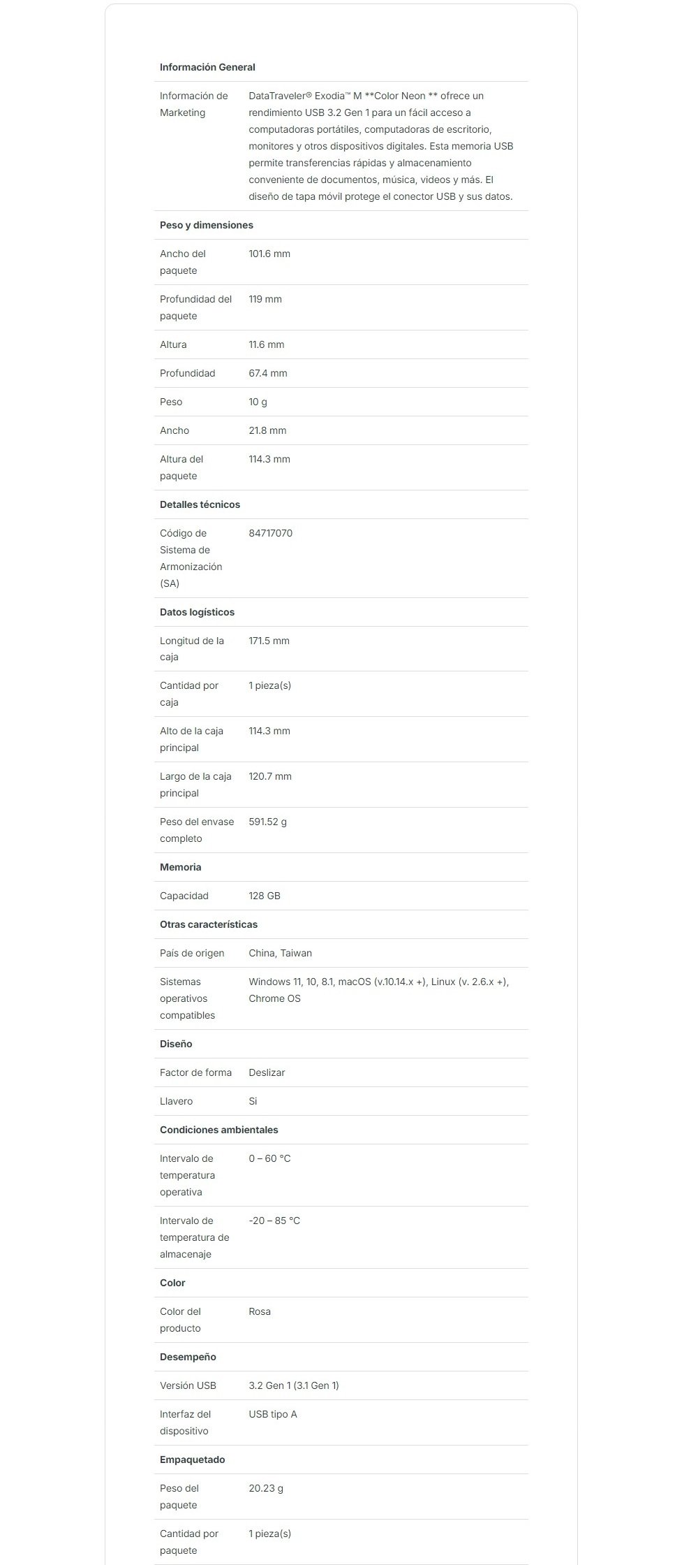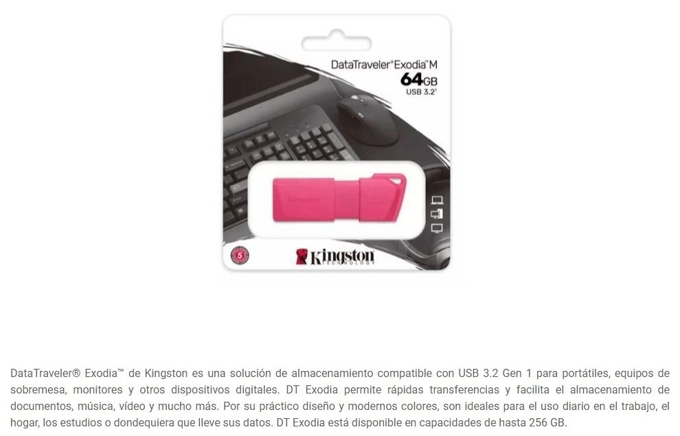 Memoria USB KINGSTON DataTraveler Exodia M / 128 GB / USB 3.2 Gen 1 / Tapa Deslizante / Rosa