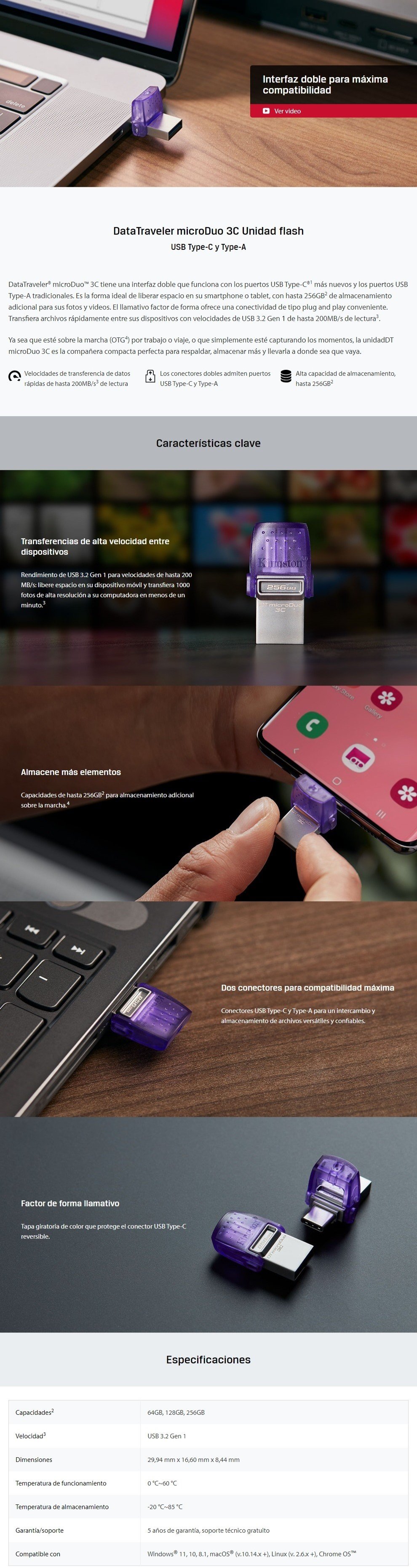 Memoria USB KINGSTON DATATRAVELER MICRODUO 3C