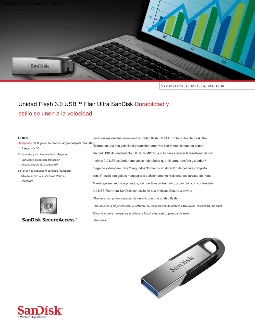 Memoria USB SANDISK ULTRA FLAIR / 256GB / USB 3.0 / Sin Tapa / Plata Con Negro