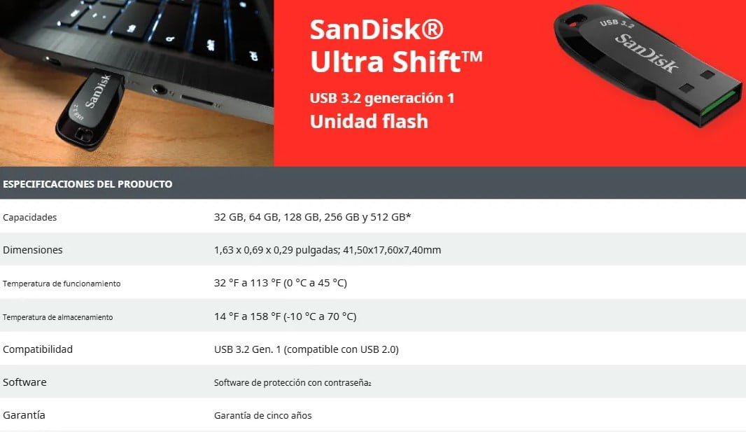 • Mantén tu mundo digital al alcance de tu mano con el SanDisk Ultra Shift USB.