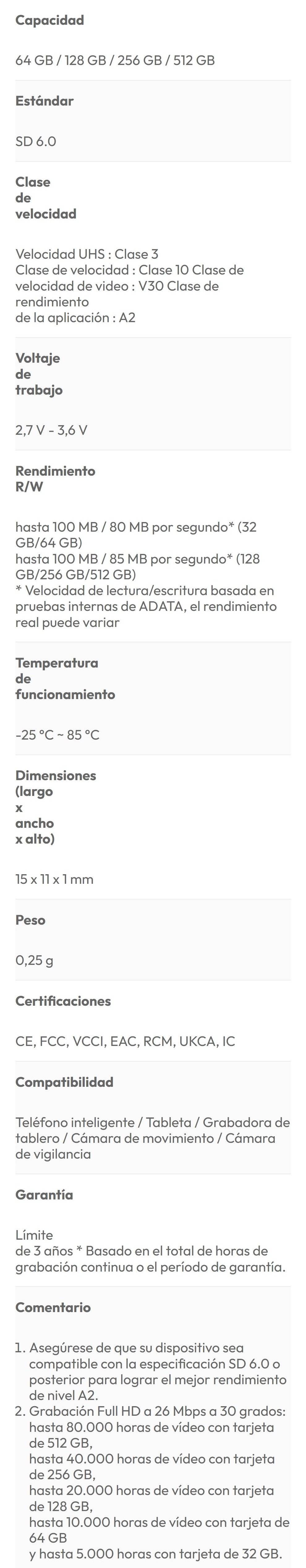 Sé el primero en valorar “Memoria Micro SD ADATA HIGH ENDURANCE / 256GB / UHS-I, Clase 10 / Con Adaptador / Lectura 100 MB/S / Negro Rojo”