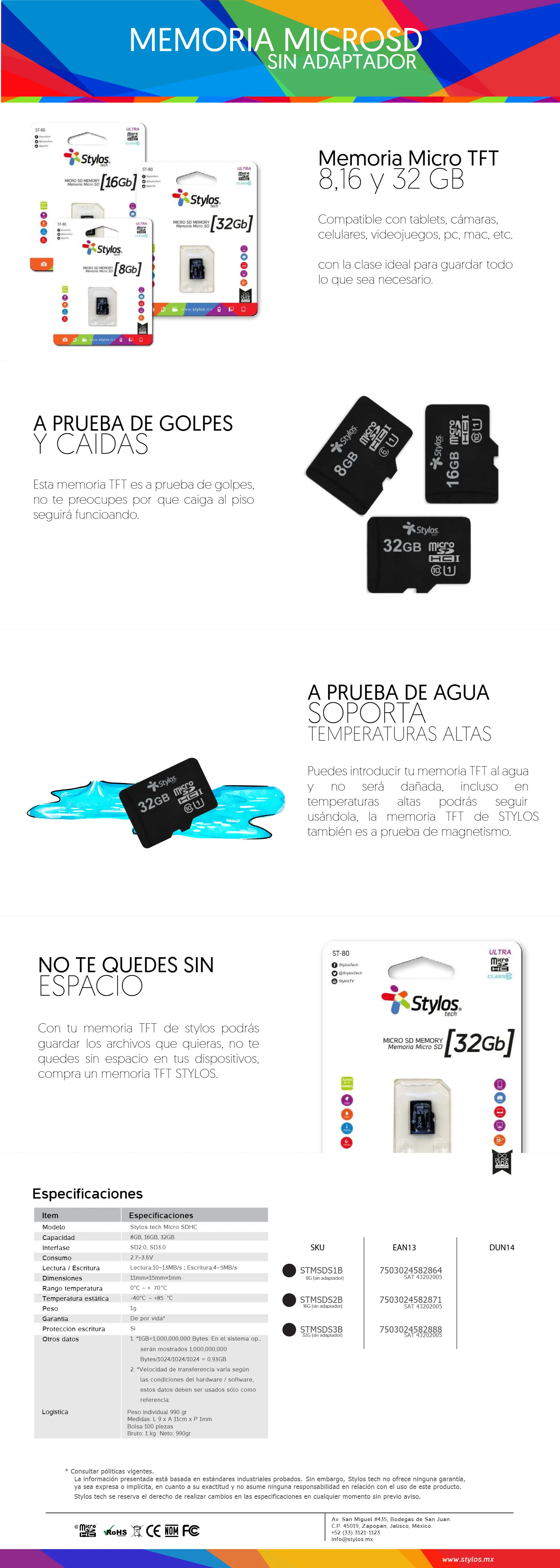 Memoria Micro SD STYLOS / 32gb / Cl10 / Sin Adaptador / Negro