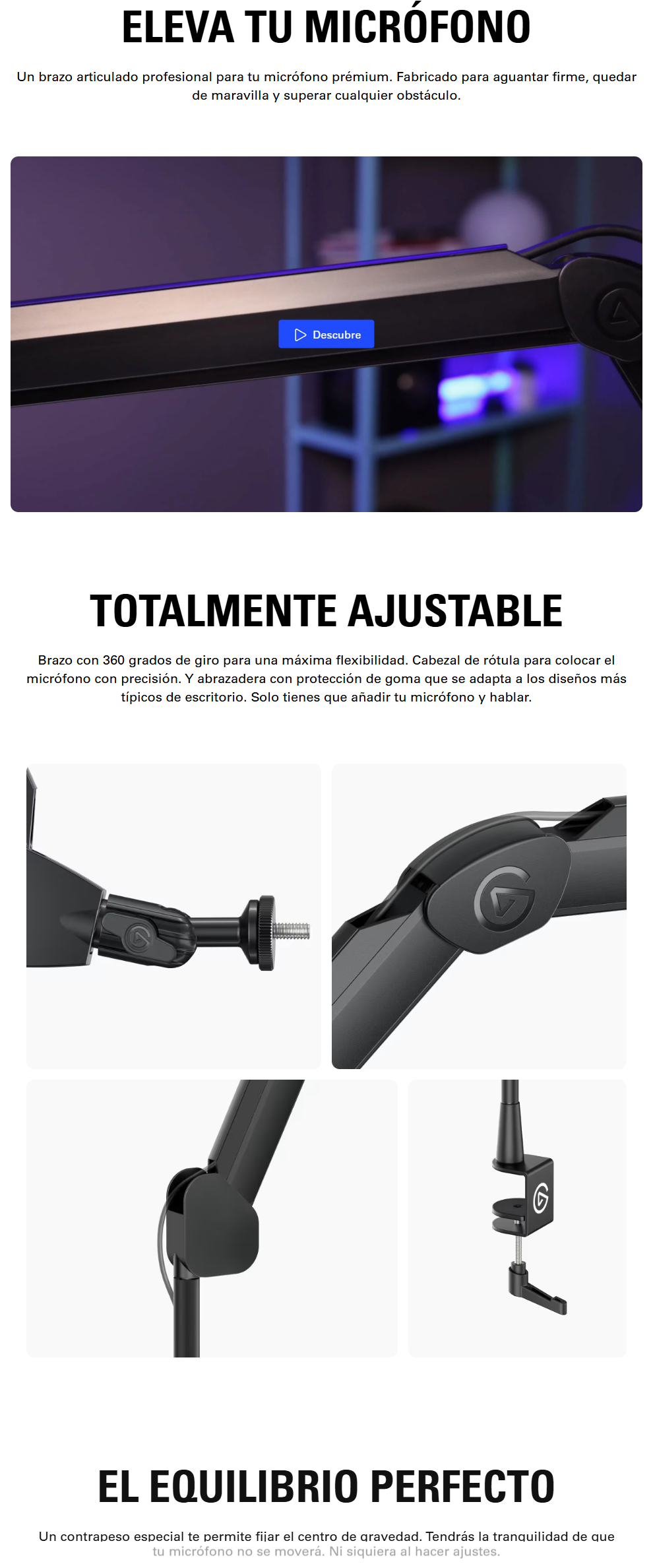 El Elgato Brazo para Micrófono Wave es un soporte de escritorio para micrófono de color negro. Cuenta con un brazo de fuselaje telescópico que permite ajustar la altura del micrófono según las necesidades del usuario. La base del soporte es adecuada para colocar en el escritorio, brindando estabilidad al micrófono durante su uso. Este producto ofrece ajustes de altura, lo que permite adaptarlo a diferentes situaciones y preferencias. Con el Elgato Brazo para Micrófono Wave, podrás disfrutar de un soporte resistente y funcional para tu micrófono.