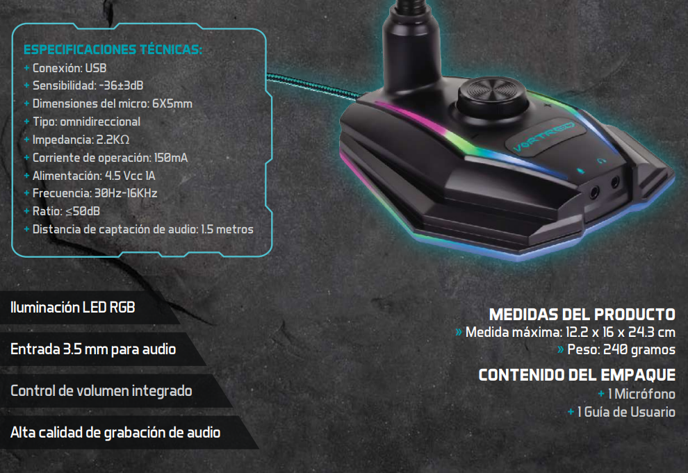 Sé el primero en valorar “Micrófono Gaming VORTRED Handler / Rgb / Alámbrico / Usb / Omnidireccional / Negro”