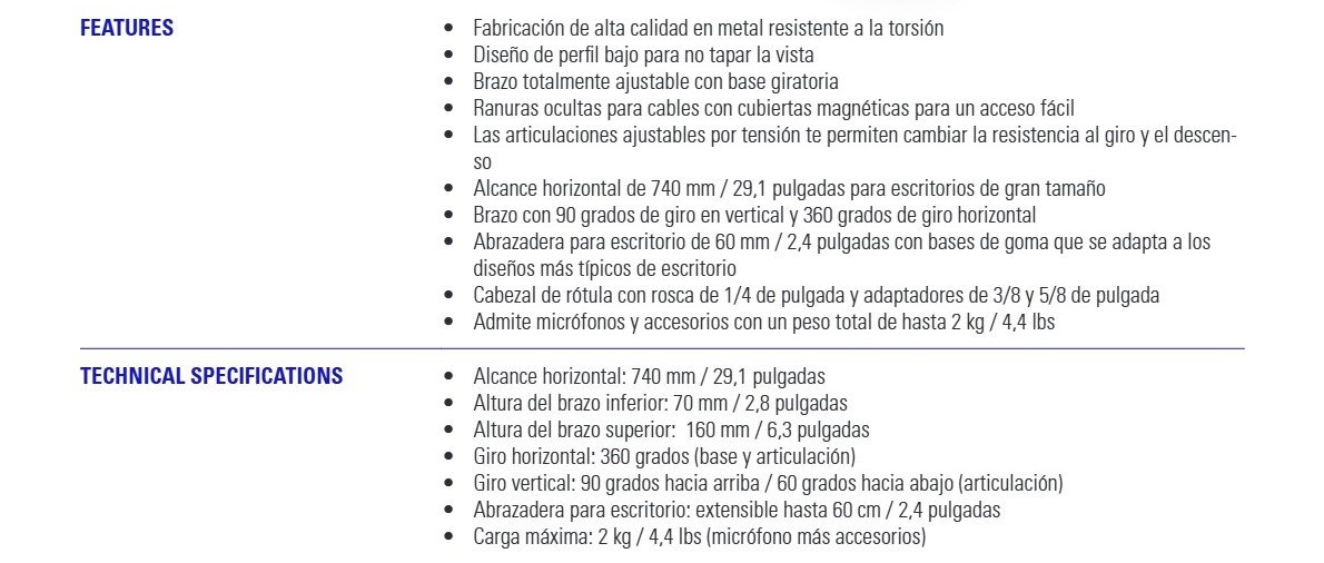 2 kg / 4,4 lbs (micrófonos más accesorios)