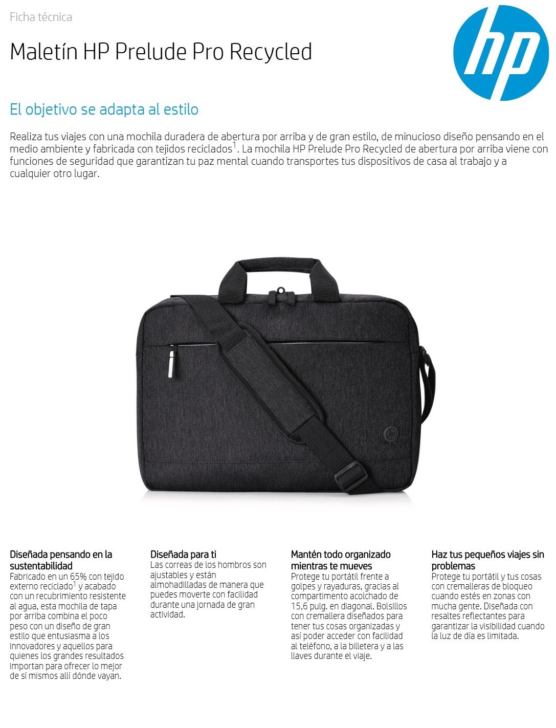 Maletín HP Prelude Pro Recycled / 15.6″ / Para Laptop, Viajes / Correas Acolchadas, Ajustables / Negro