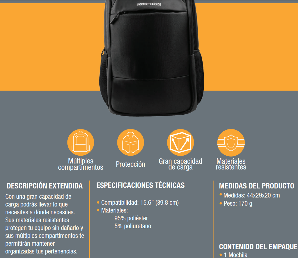 Mochila Para Laptop PERFECT CHOICE Fearless PC-083924
