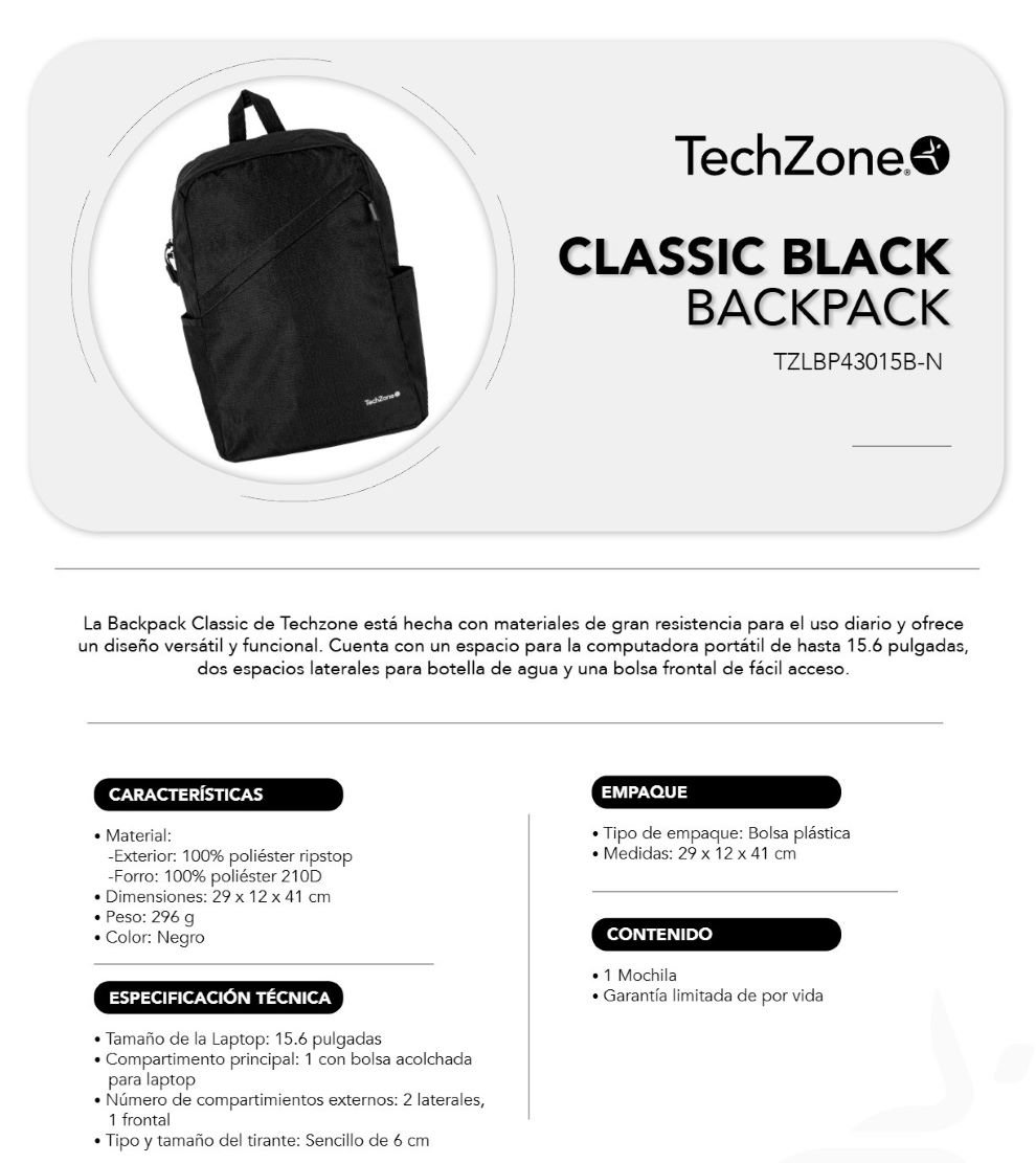 • La Backpack Classic de TechZone está hecha con materiales de gran resistencia para el uso diario y ofrece un diseño versátil y funcional.
