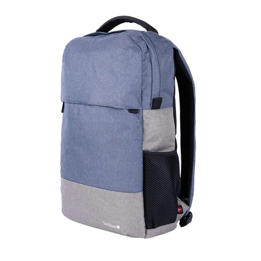 Mochila TECHZONE Strong Blue / 15.6″ / Para Laptop / Poliéster / Bolsa Acolchada Para Laptop Y Organizador / Color Azul-Gris