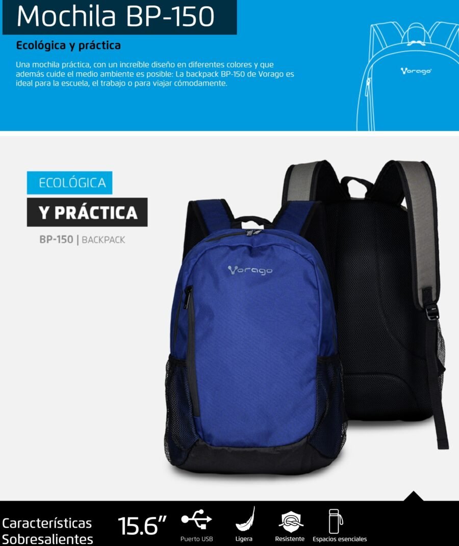 Una mochila práctica, con un increíble diseño en diferentes colores y que además cuide el medio ambiente es posible: La backpack BP-150 de Vorago es ideal para la escuela, el trabajo o para viajar cómodamente.
