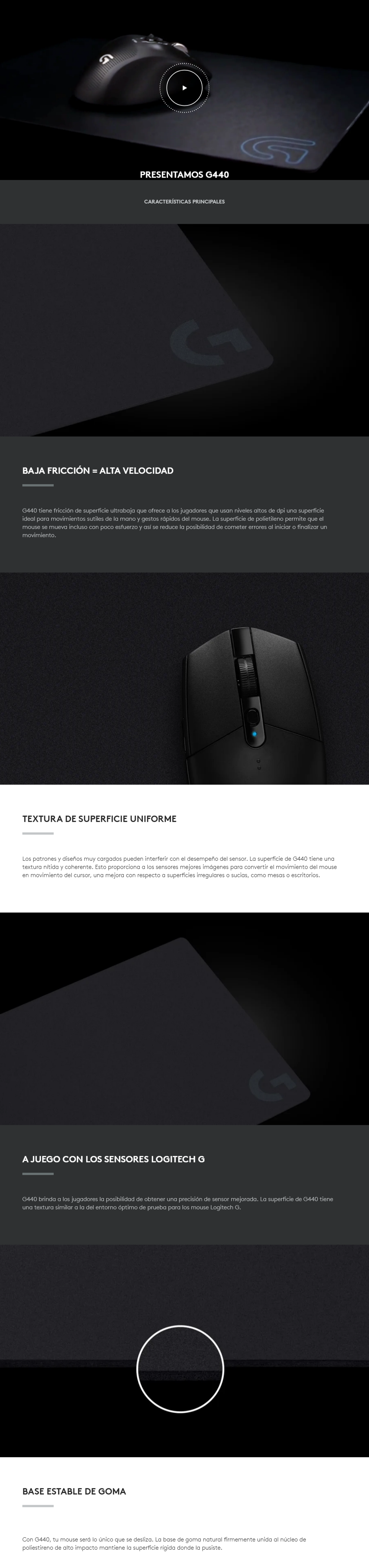 La base de goma se mantiene en su lugar para juegos intensos. La textura de la superficie está optimizada para los ratones Logitech G y el máximo rendimiento de los juegos.