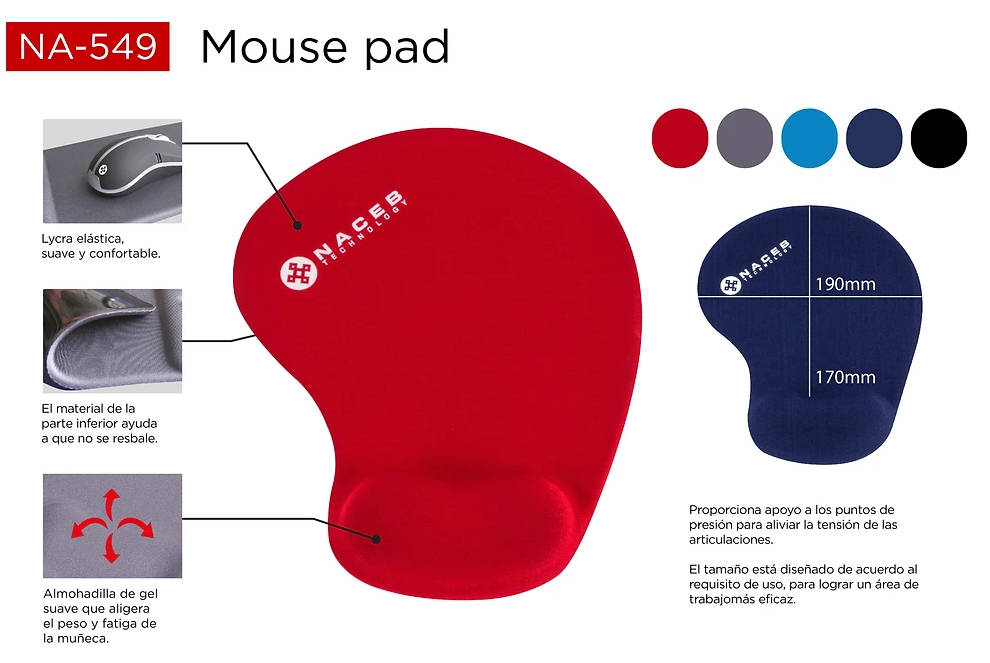 Ergonómico, facilita el movimiento y el alivio de la tensión en las articulaciones. proporciona apoyo en los puntos de presión para un confort excepcional. Brinda máximo control al utilizar el ratón.