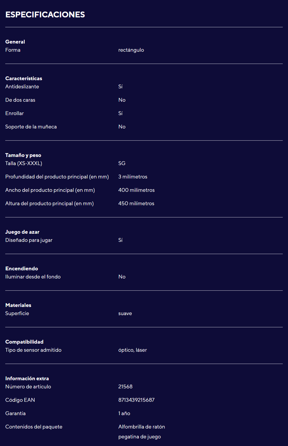 Mousepad con textura de superficie optimizada para una precisión óptima y un control suave
