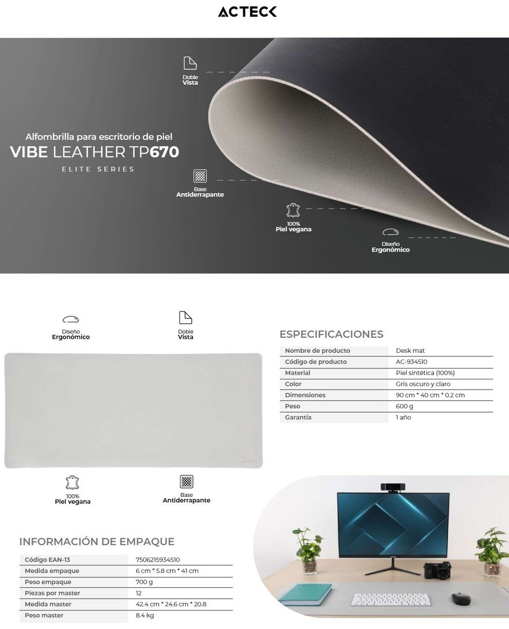 Sé el primero en valorar “Mousepad ACTECK VIBE LEATHER TP670 / XXL / Doble Cara / Antideslizante / 90X40X0.2 CM / Piel Sintética / Color Café-Azul”