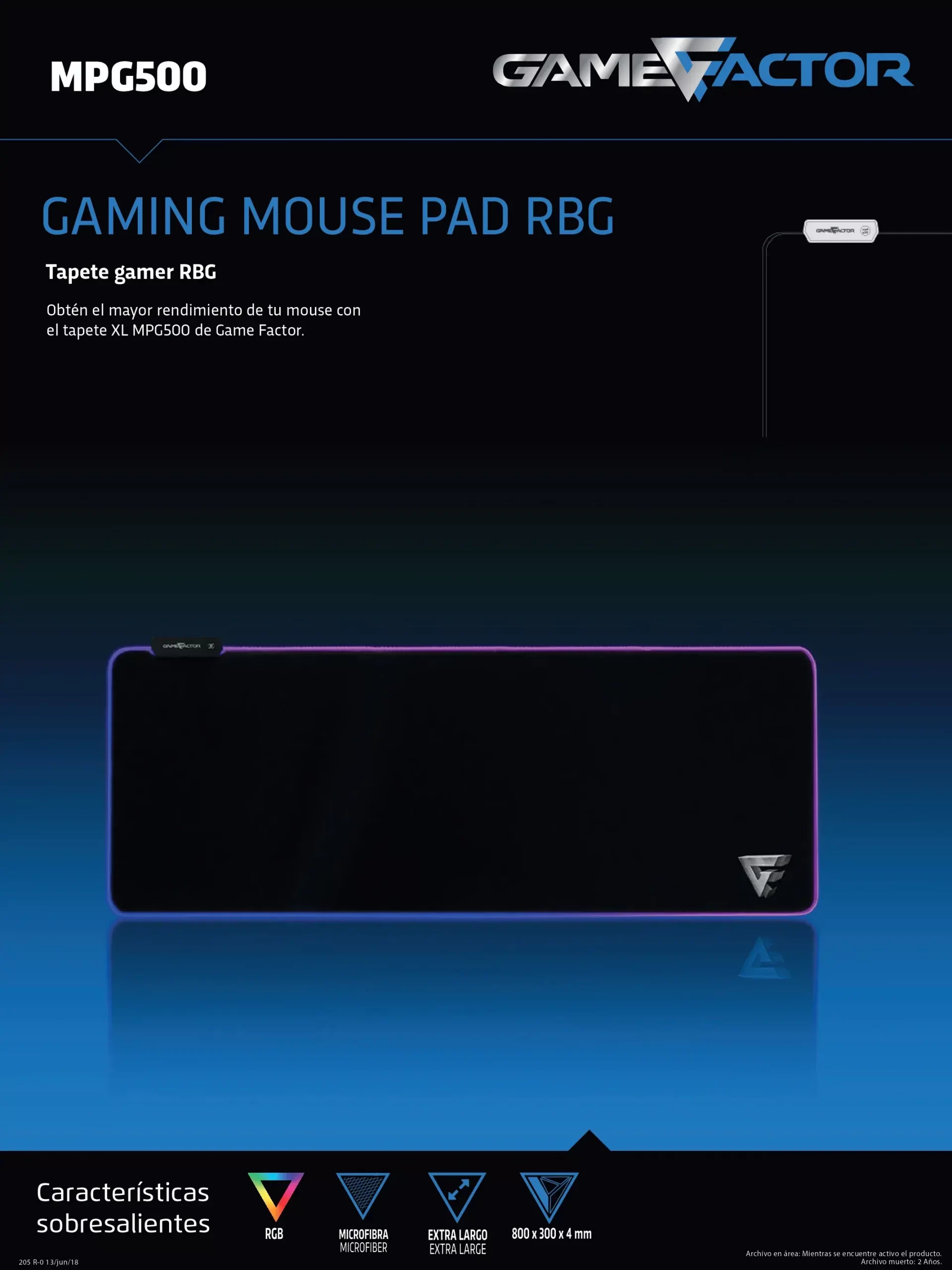 Mousepad Game Factor Mpg500 RGB / XL / 800X300X4MM / Microfibra / Speedcontrol / Negro