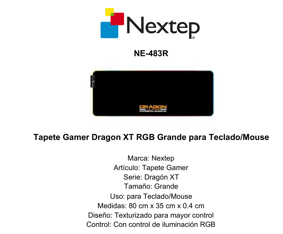 Sé el primero en valorar “Mousepad Gamer NEXTEP Dragon XT – 80cm x 35cm, Grosor 4mm, Negro”