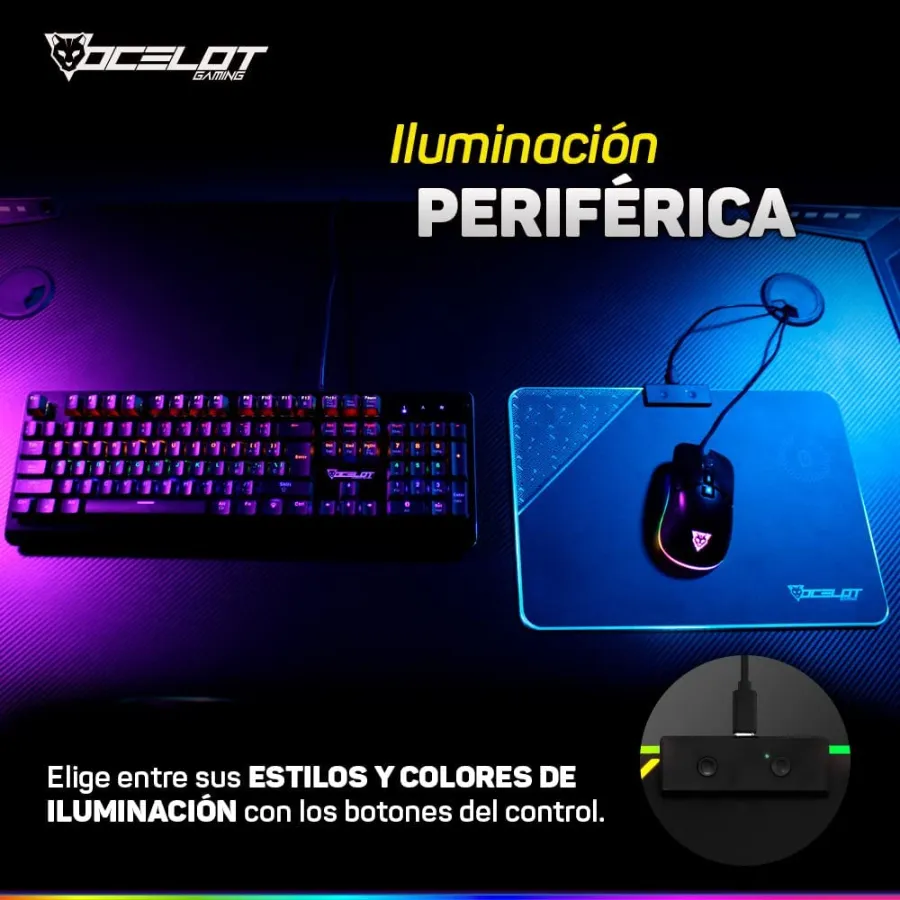 Mousepad OCELOT Gaming OMPR01 / LED / Alámbrico / Usb / 35CM X 25CM / A prueba de derrames de líquido / Negro / OMPR01