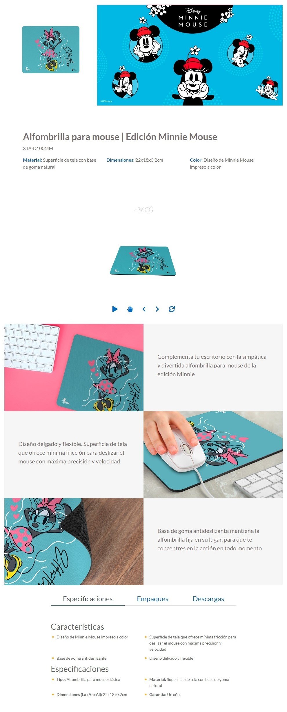 Mousepad XTECH XTA-D100MM / Antideslizante / 22X18X0.2 CM / Material Antideslizante / Edición Especial Minnie Mouse