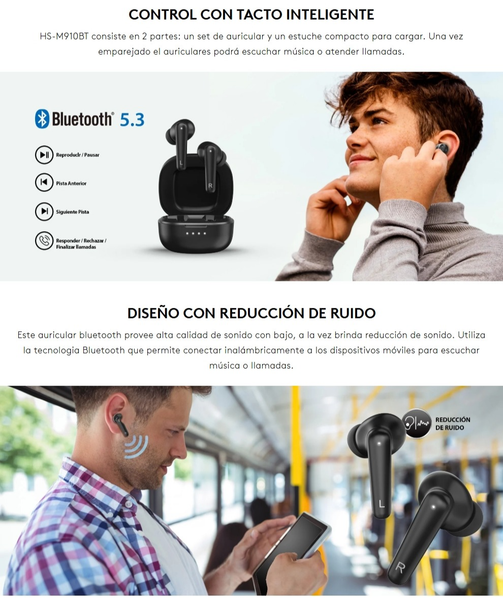 Audífonos GENIUS HS-M910BT – Inalámbrico Bluetooth 5.3, Reducción De Ruido, Manos Libres, Touch – Negro