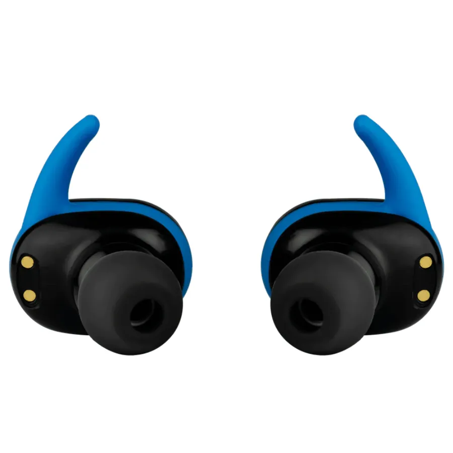 Audio mejorado con graves más intensos. Cuentan con sincronización automática BT True Wireless Stereo. Su práctico estuche permite transportarlos y cargar sus baterías hasta 4 veces. Su diseño es resistente al sudor, ideal para hacer ejercicio sin preocupaciones.