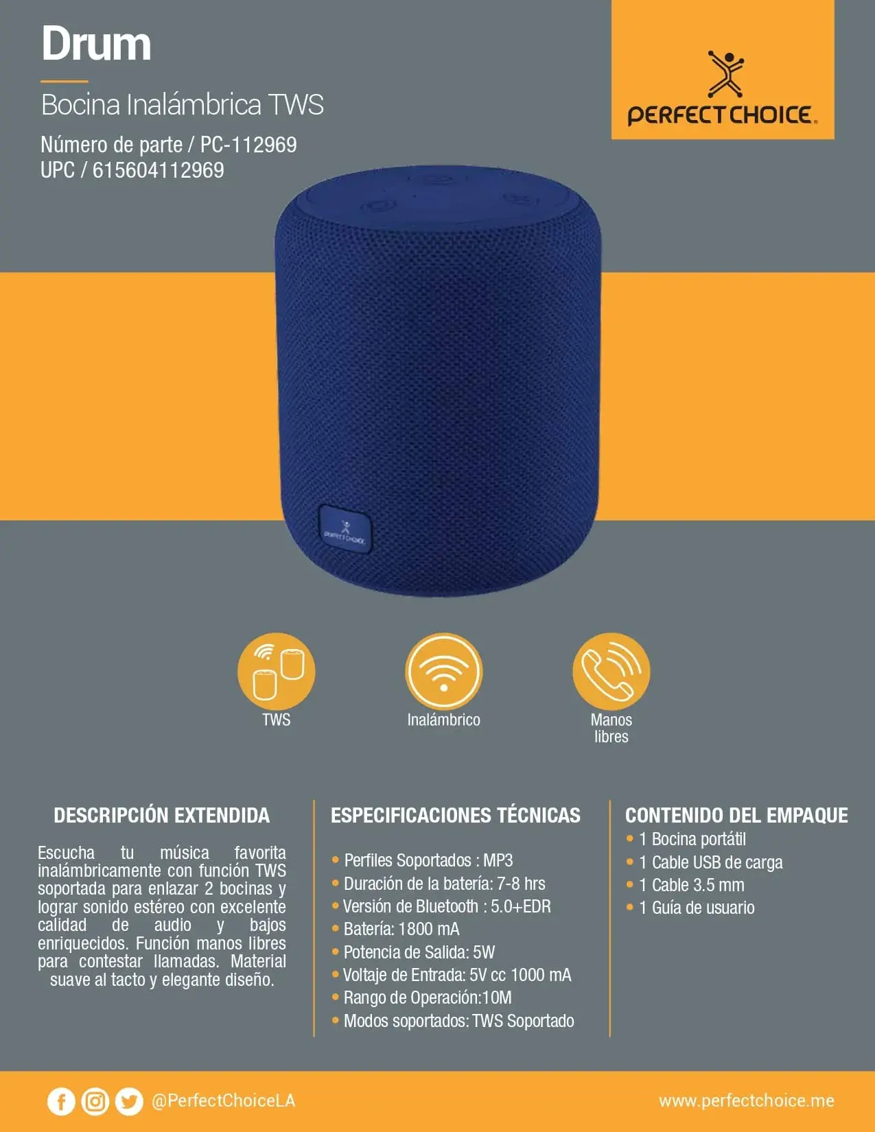 BOCINA PERFECT CHOICE PC-112969 DRUM