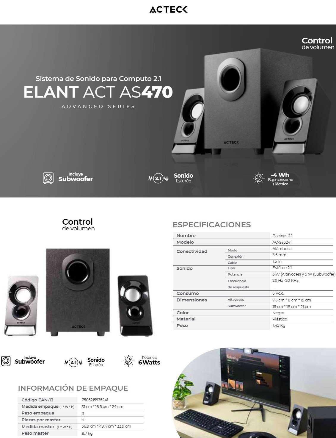 Bocinas ACTECK Con Subwoofer ELANT ACT AS470