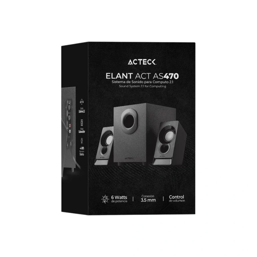 Bocinas ACTECK Con Subwoofer ELANT ACT AS470 / Alámbrica / 3.5 MM / Sonido Estéreo 2.1 / 6 Watts RMS / Control De Volumen / Negro