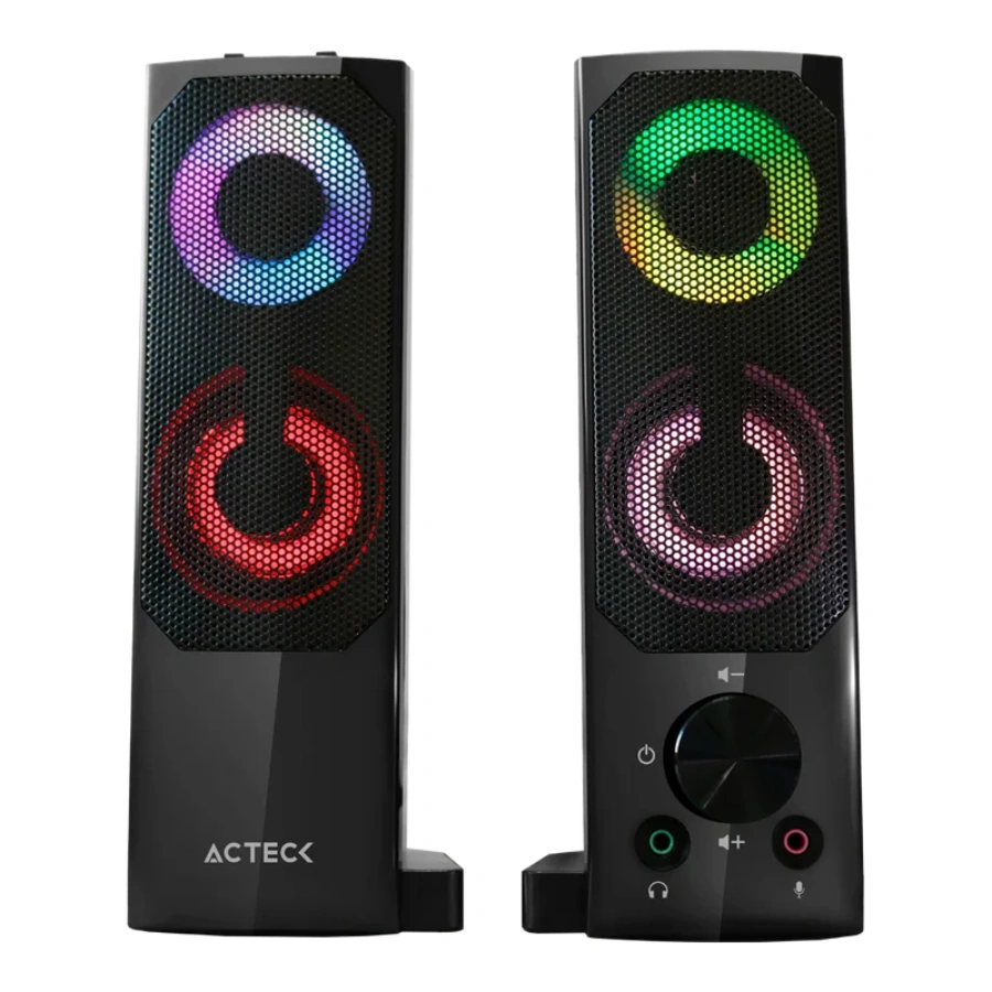 Bocinas ACTECK Elant Brick AS450 / Alámbricas / USB, 3.5 MM / Sonido Estéreo / 6W (2x3W) / Iluminación LED / Negro