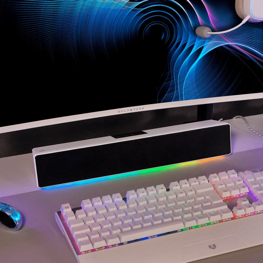 Bocinas Gamer BALAM RUSH Glimm Bar BG585 RGB / 10 W RMS / Inalámbrica / USB-C / Bluetooth, 3.5 Mm / Conexión BT – AUX / Sonido Estéreo / Iluminación LED / 35 Hz – 16 Khz / Color Blanco