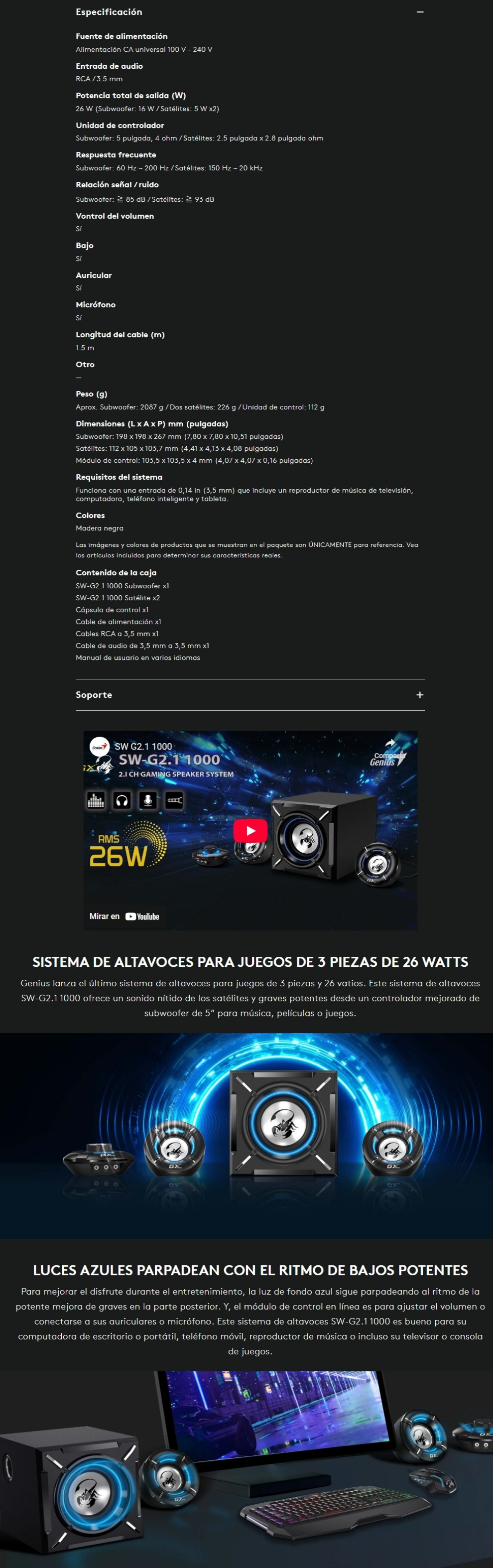 Sé el primero en valorar “Bocinas GENIUS SW-G2.1 1000 – 26W RMS, Con Subwoofer, Alámbrico 3.5mm, Conector Para Micrófono y Auriculares – Negro”