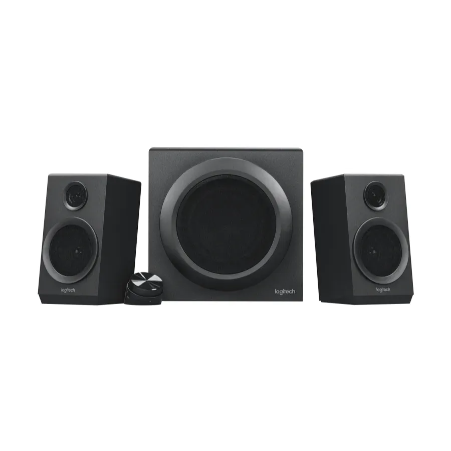 Bocinas Logitech Z333 / 2.1 / 40 W / Con Subwoofer / Alámbrico / 3.5mm y RCA / Sonido Impactante / Televisor,PC,Smartphone / Negro