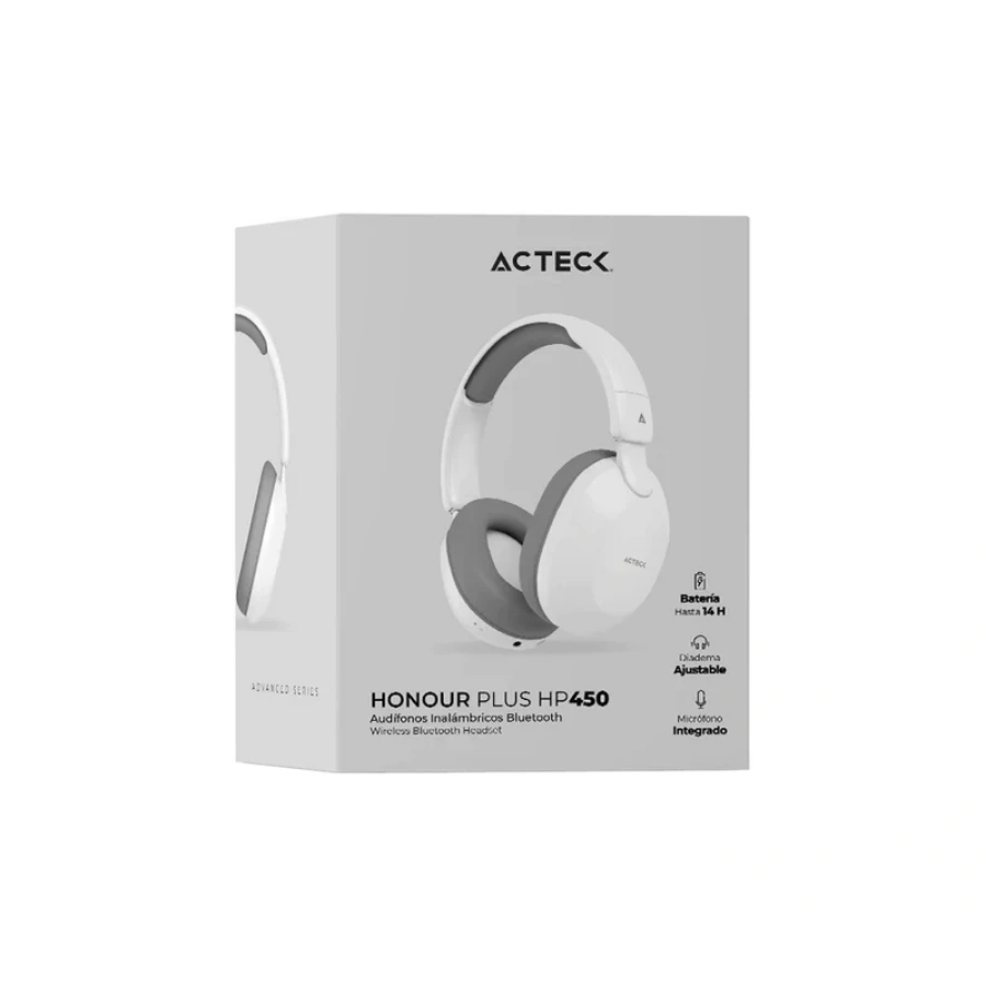 Diadema ACTECK Honour Plus HP450 / Inalámbrico / Bluetooth / Conexión De Energía USB-C / Con Micrófono Integrado / Hasta 14 Horas / Blanco Con Gris