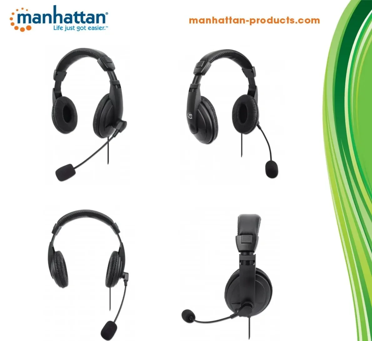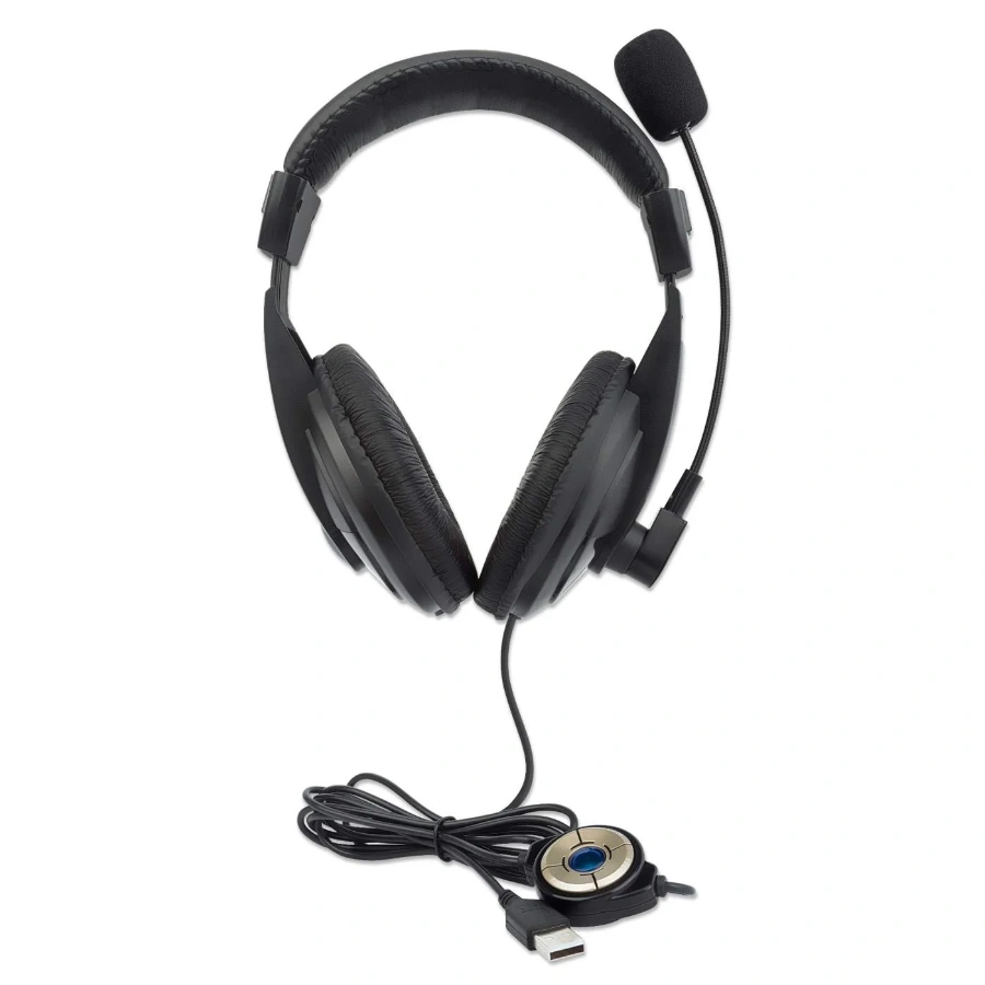 Diadema MANHATTAN 179843 / Cable Con Conexión USB-A / Controles Integrados / Micrófono Ajustable / Negro