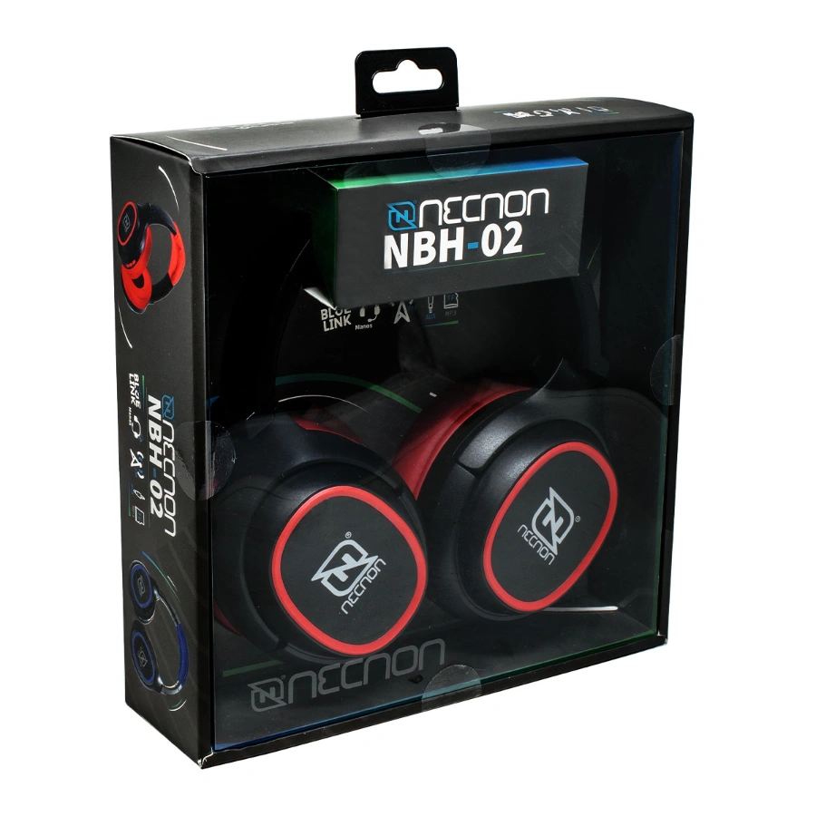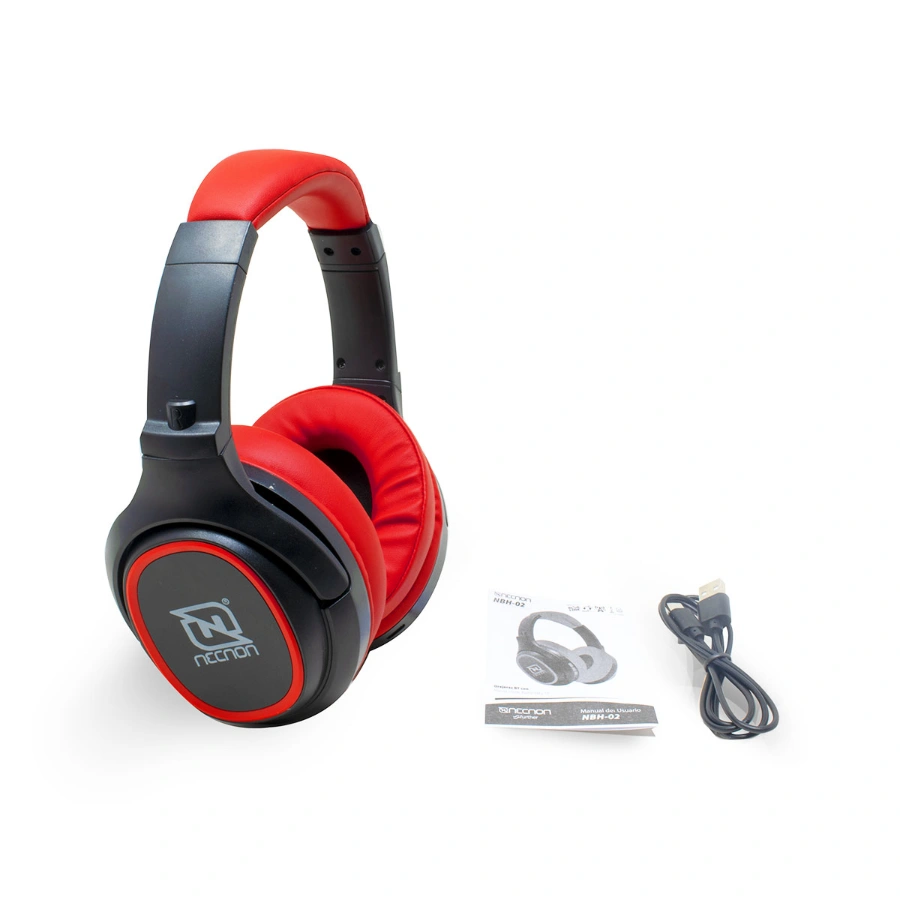 Diadema OVER-EAR NECNON NBH-02 / Inalámbrico / Bluetooth / 3.5Mm Stereo / Manos Libres / Radio FM / Slot Para Memoria TF / Negro-Rojo