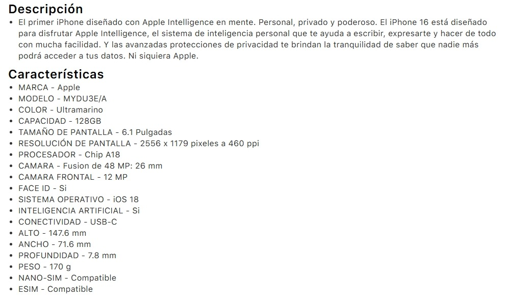 SKU: IPHONE-16-128-ULTRAMARINO Categoría: