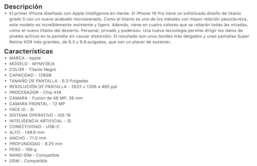 SKU: IPHONE-16PRO-128-NEGRO Categoría: