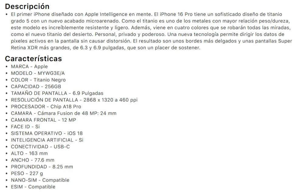SKU: IPHONE-16PM-256-NEGRO Categoría:
