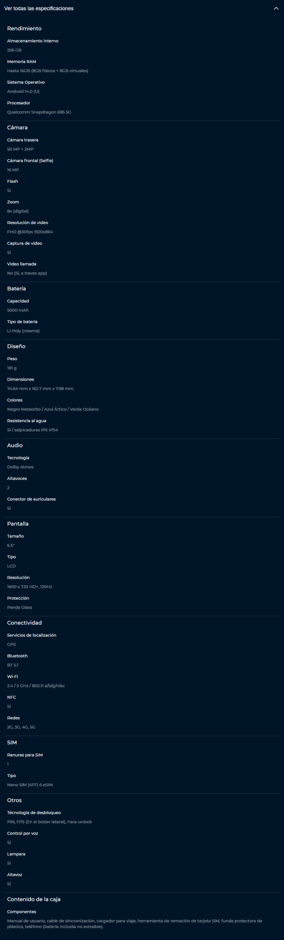 Smartphone MOTOROLA G34 5G / 6.5″ / Snapdragon 695 5G / Almacenamiento 256GB / RAM 8GB / Cámara 50MP+2MP/16MP / Android 14 / Azul