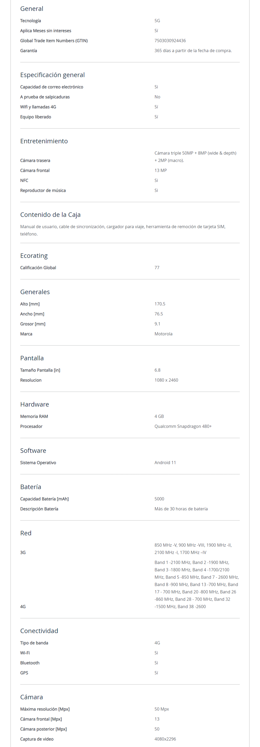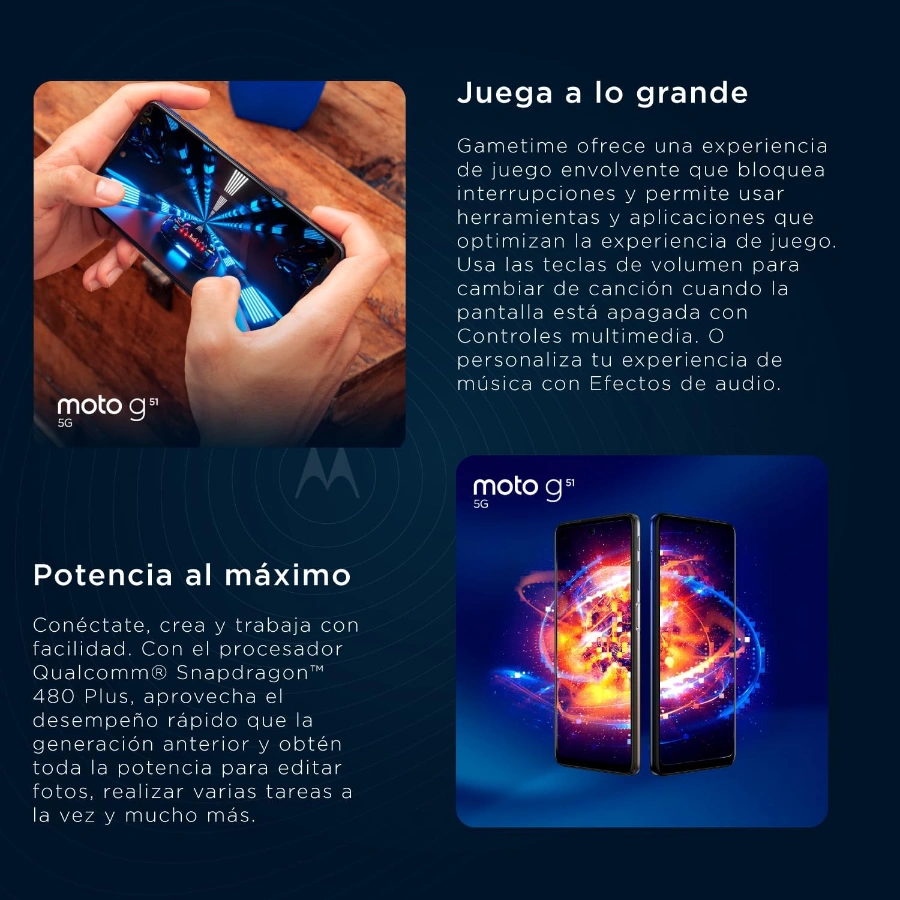 Smartphone MOTOROLA G51 5G / 6.8″ / Almacenamiento 128GB / Memoria Ram 4GB / Cámara 50MP+8MP+2MP/13MP / Snapdragon 480+ / Android 11 / Dorado