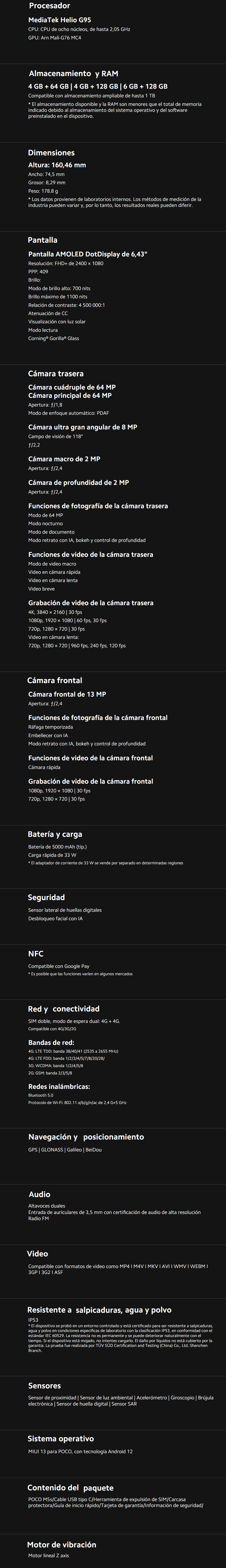 Smartphone XIAOMI POCO M5S / 6.43″ / Almacenamiento 256GB / Ram 8GB / Cámara 64MP+8MP+2MP+2MP/13MP / MediaTek / Android 12 / Gris