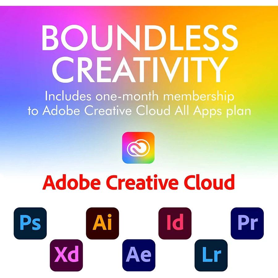 • Membresía gratuita de un mes al plan de Adobe® Creative Cloud® con todas las aplicaciones 2 para acceso a increíbles aplicaciones de edición de fotos y videos.