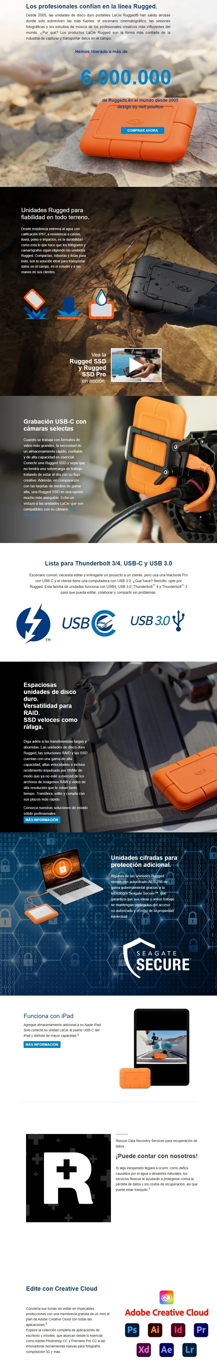 Disco Duro Externo SEAGATE LACIE RUGGED 2TB STFR2000800