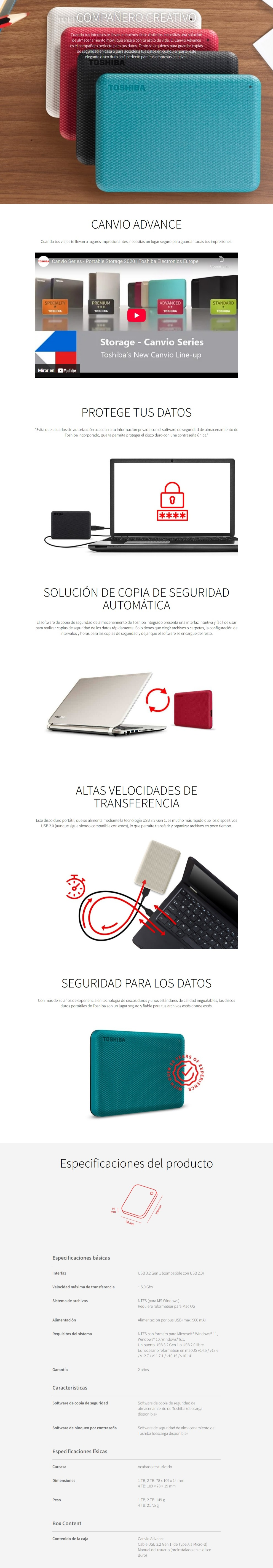 Disco Duro Externo TOSHIBA Canvio Advance V10 / 1TB / 2.5” / Usb 3.2 / Windows, Mac OS / Negro / HDTCA10XK3AA