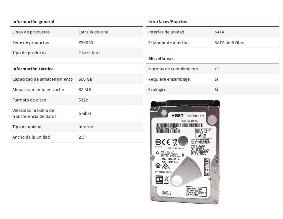 Disco Duro HITACHI Z5K500 / 500GB / 2.5″ / Sata De 6 Gb/s / Gris