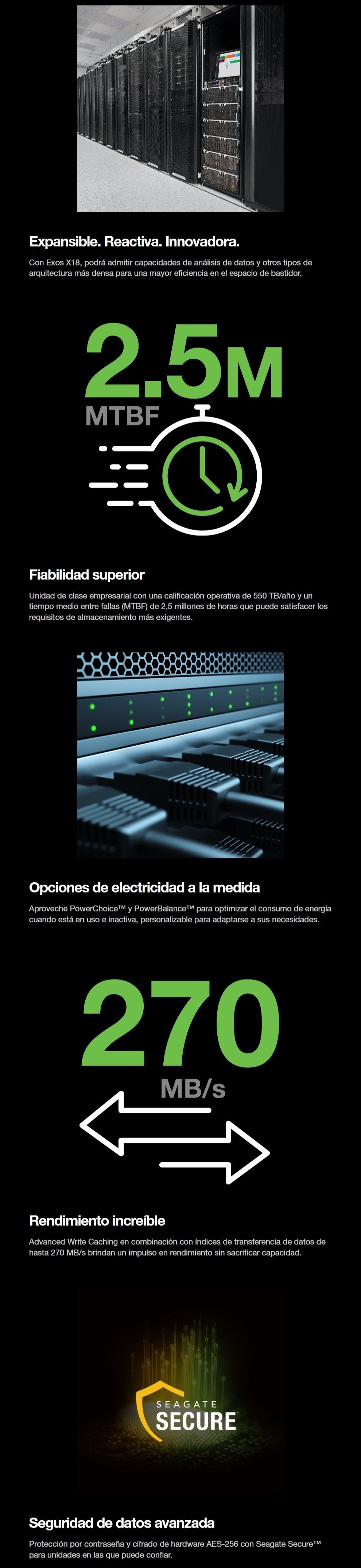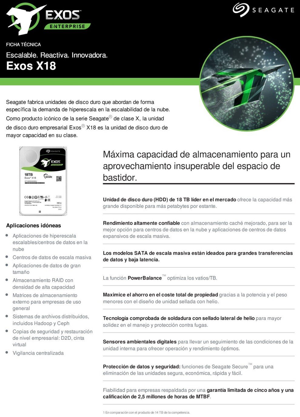 Disco Duro Interno SEAGATE EXOS 18 ENTERPRISES / 18TB / 3.5” / SATA 6 Gbit/S / 7200 Rpm / 256 Mb Caché / 270 MB/s Transferencia / 9.4 W